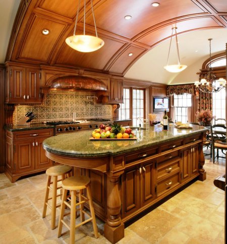 The layout is great as are many of the details. Personally I would go much lighter and skip much of the wood and kitchen curtains