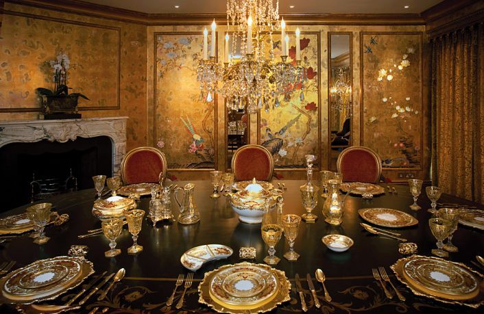 Annabel Hall Design created this opulent and golden interior, probably in deepest, darkest Surrey. KOTHEA sell several gold fabrics ranging from luxurious silks to contract grade faux leather upholstery fabric.