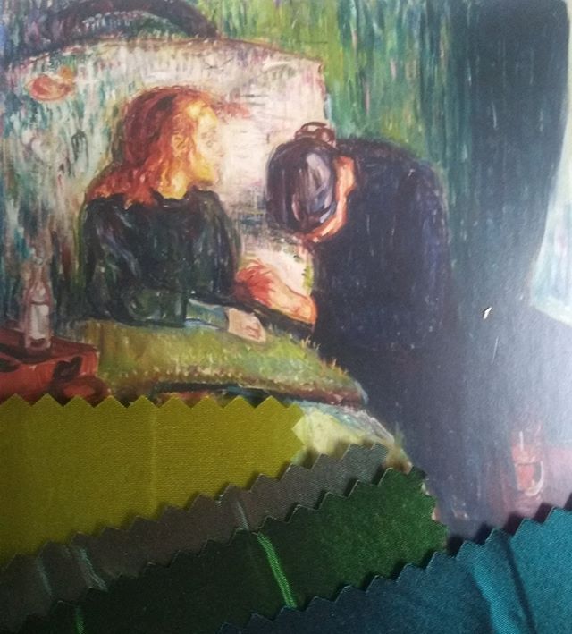 Kothea samples of sumptuous silks in a palette of rich greens, colours inspired by this Edvard Munch painting. .
